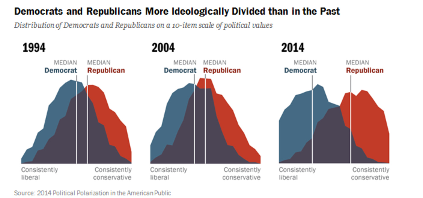 Consistently, the Pew Research Foundation has been tracking the last two decades of increasing division: