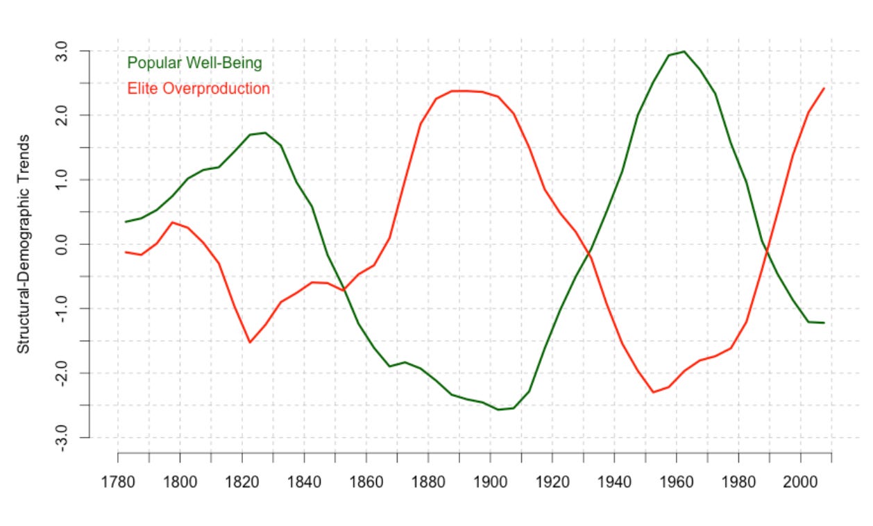 Peter Turchin, a mathematical historian, has been tracking broad indicators of stress and forecasting the impending division of society for a few decades: